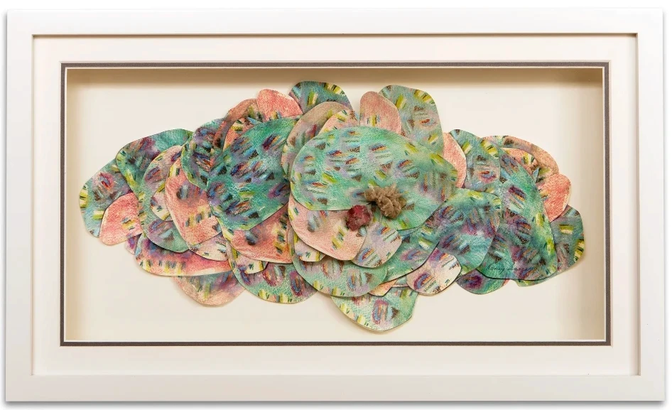 Mixed media collage, 13 ½ x 19 ¼ x 3 inches