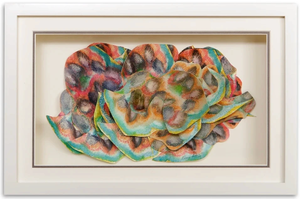 Mixed media collage, 12 ½ x 19 ¼ x 3 inches