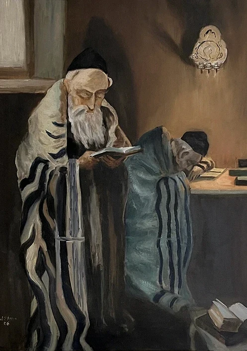 The only piece that survived Hurricane Agnes. Two Rabbis, 1956, oil on canvas board, 20 x 16 in.