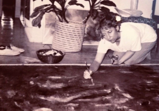 Nancy working on Rainforest, 1992.