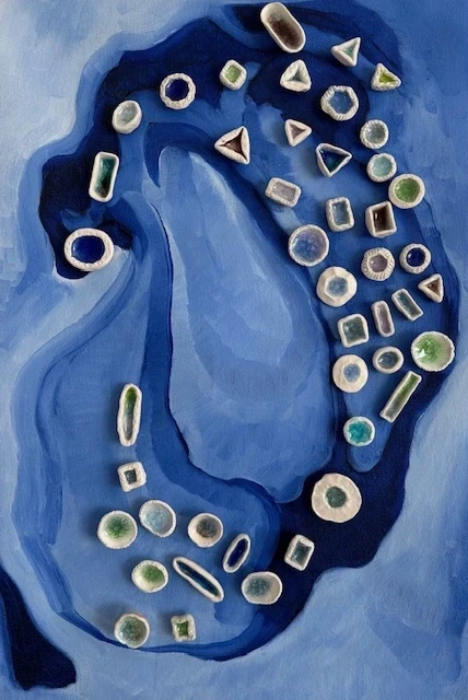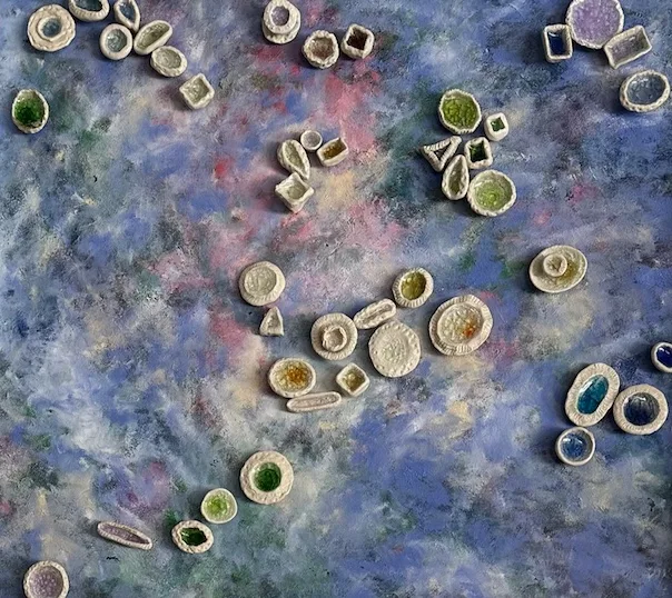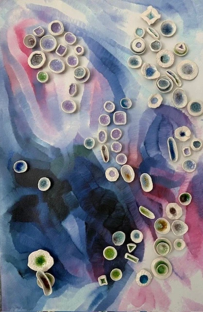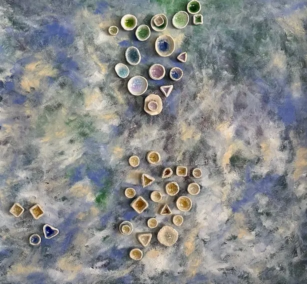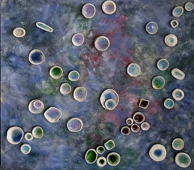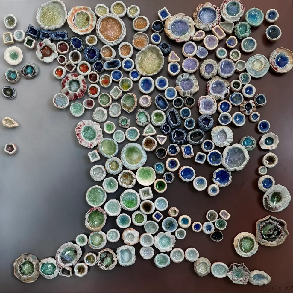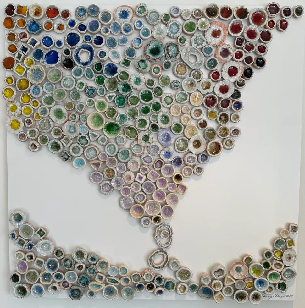 ceramic & melted glass, 24 × 24 in.